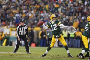 Football: NFC Playoffs: Green Bay Packers QB Aaron Rodgers (12) in action vs New York Giants at Lambeau Field.
